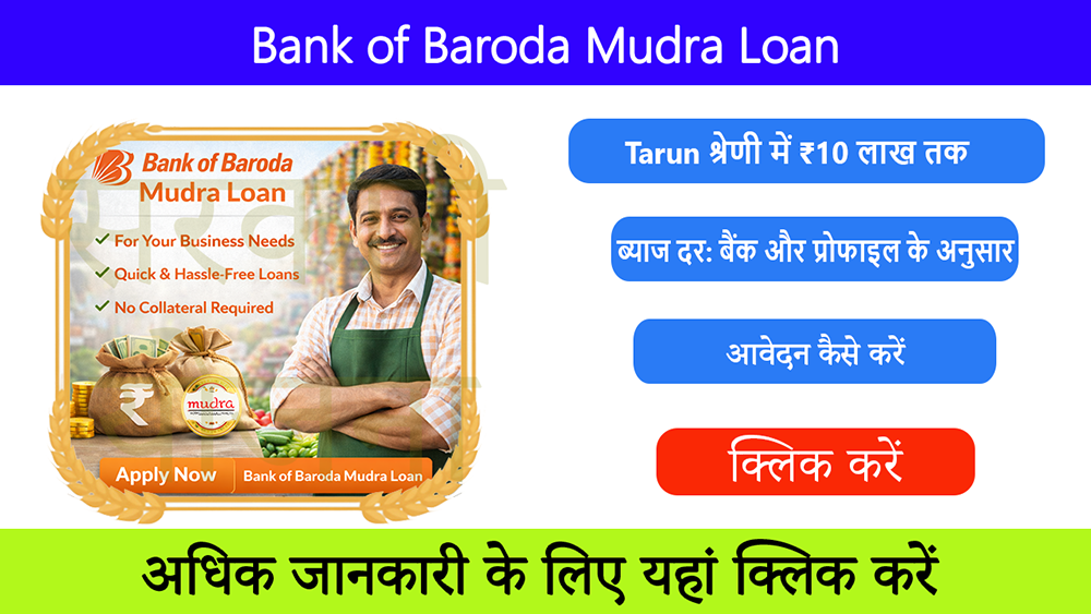 Bank of Baroda Mudra Loan 2026 छोटे व्यापारियों के लिए एक बेहतरीन अवसर है। सरकारी योजना के तहत बिना गारंटी और आसान प्रक्रिया के साथ बिज़नेस शुरू या विस्तार किया जा सकता है।