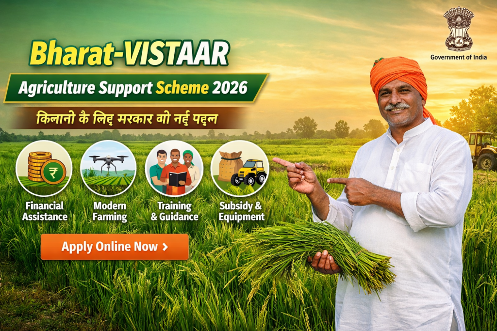 Bharat-VISTAAR Agriculture Support Scheme 2026: किसानों के लिए सरकार की नई योजना। वित्तीय सहायता, तकनीकी मदद और कृषि विकास के लिए आवेदन कैसे करें, पात्रता, दस्तावेज और लाभ की पूरी जानकारी।
