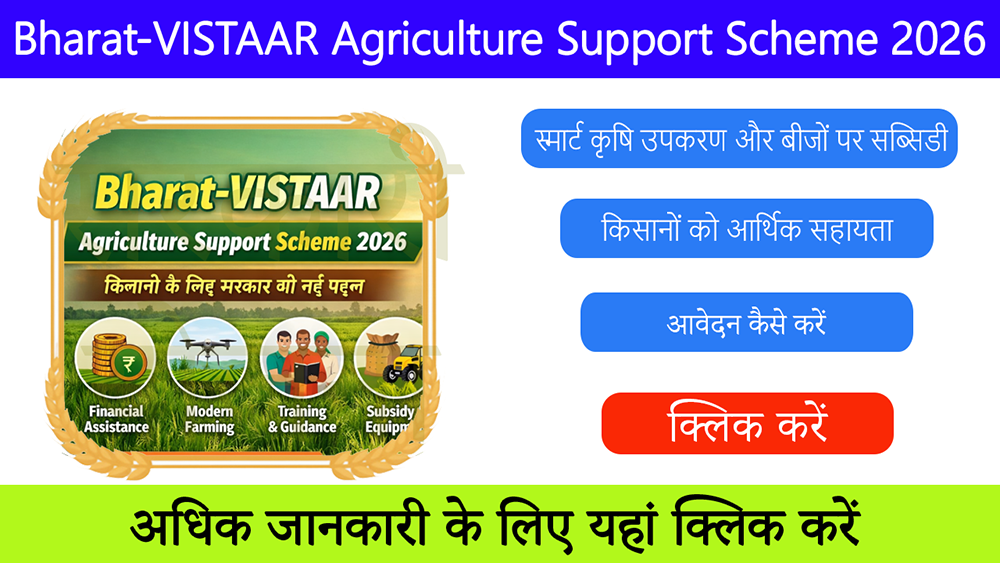 Bharat-VISTAAR Agriculture Support Scheme 2026: किसानों के लिए सरकार की नई योजना। वित्तीय सहायता, तकनीकी मदद और कृषि विकास के लिए आवेदन कैसे करें, पात्रता, दस्तावेज और लाभ की पूरी जानकारी।