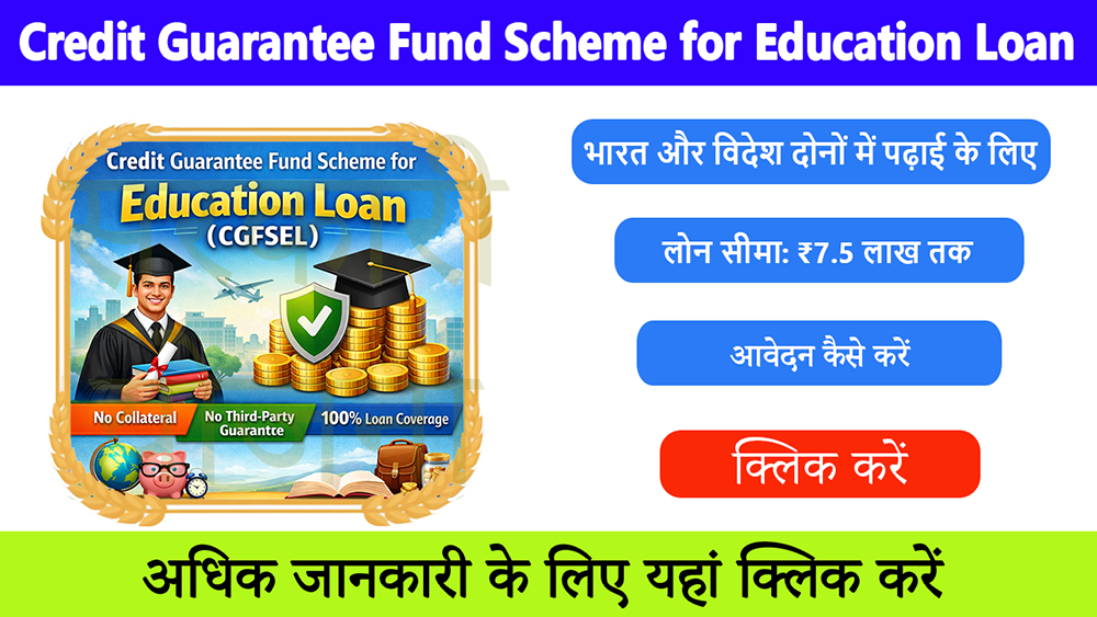 Credit Guarantee Fund Scheme for Education Loans (CGFSEL) एक सरकारी योजना है जो छात्रों को बिना कोलेटरल (Collateral-Free) एजुकेशन लोन उपलब्ध कराने में मदद करती है।