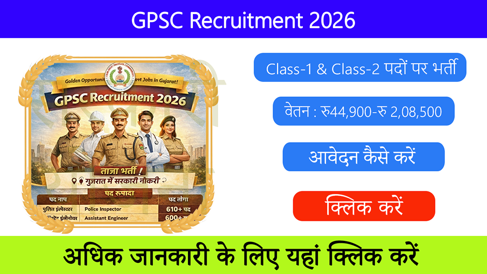 GPSC द्वारा वर्ष 2026 में निकाली गई यह भर्ती इंजीनियरिंग, मेडिकल, प्रशासनिक और तकनीकी क्षेत्रों से जुड़े उम्मीदवारों के लिए है।