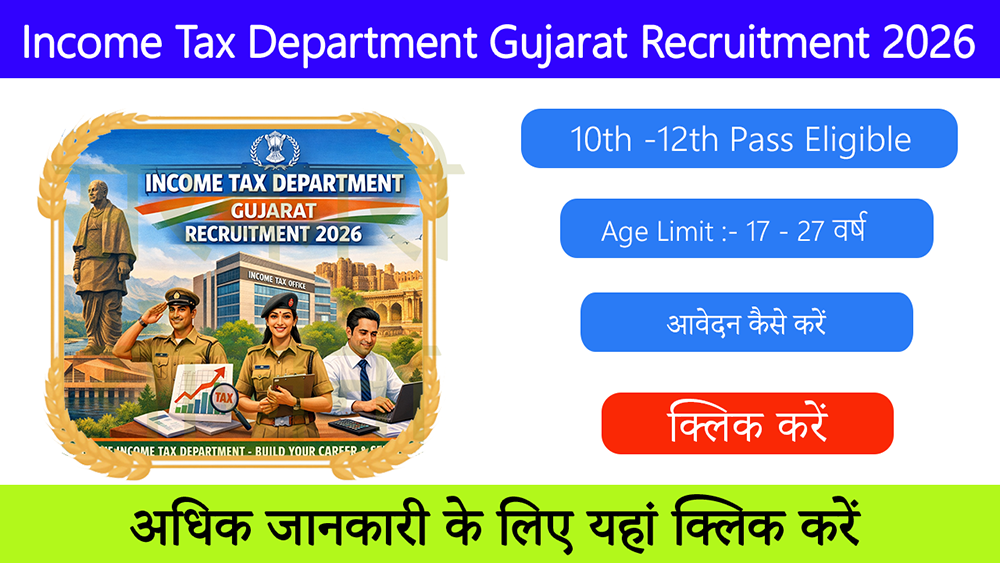 अगर आप गुजरात में सरकारी नौकरी की तलाश कर रहे हैं, तो Income Tax Department Gujarat Recruitment 2026 आपके लिए शानदार अवसर है। इस भर्ती के तहत कुल 46 पदों पर आवेदन आमंत्रित किए गए हैं। योग्य उम्मीदवार ऑनलाइन आवेदन कर सकते हैं।